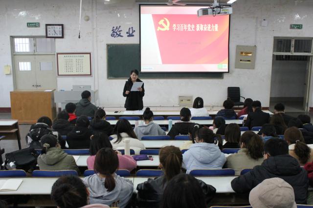 2月28日,9728太阳集团本科生党支部书记段艳林以“学习百年党史,汲取奋进力量”为主题,为本科生党支部全体成员上党课。