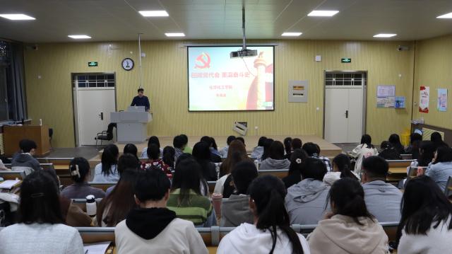 会议伊始,李海波以“回顾党代会,重温奋斗史”为题,介绍了中国共产党成立的第一届全国代表大会到党的第二十次全国代表大会概况以及中国共产党过去五年的工作和新时代十年的伟大变革。通过对历届全国代表大会召开的地点、会议主题、重大决议和与会人员构成等方面的深入剖析,全面回顾了中国共产党从小到大,从弱到强的艰辛发展之路。李海波指出中国共产党是解放思想、实事求是、与时俱进的党,是理论上成熟和不断发展的党,我们党在领导革命、建设和改革不断从胜利走向胜利的历史进程中,也不断实现党的理论基础和指导思想的与时俱进。他强调中国共产党用伟大奋斗创造了百年伟业,也一定能用新的伟大奋斗创造新的伟业,同学们要坚定不移听党话、跟党走,牢记空谈误国、实干兴邦,坚定信心、同心同德,埋头苦干、奋勇前进,为全面建设社会主义现代化国家、全面推进中华民族伟大复兴而团结奋斗。