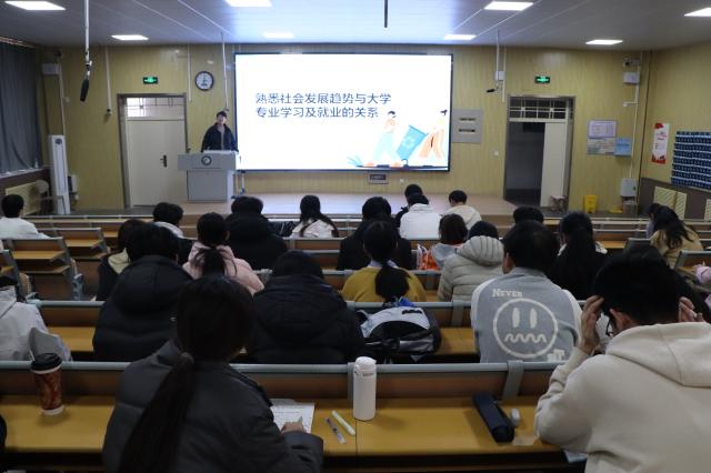9728太阳集团组织开展“熟悉社会发展趋势与大学专业学习及就业的关系”专题党课