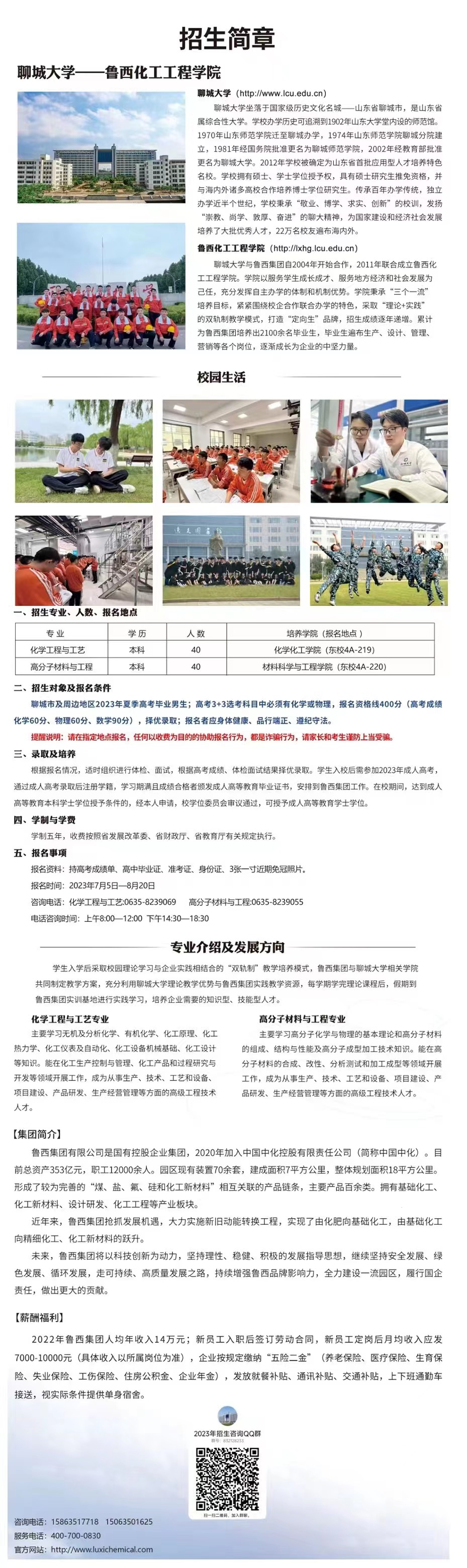 太阳成集团tyc9728鲁西化工工程学院2023年招生简章