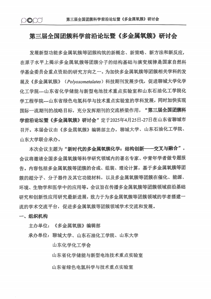 第三届全国团簇科学前沿论坛暨《多金属氧簇》研讨会