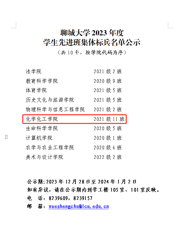 为加强我校学生班集体规范化建设,激励学生热爱集体、关心集体,形成团结向上的优良学风、班风,我校选评选树了10个先进班集体标兵,我院2021级11班获此荣誉。