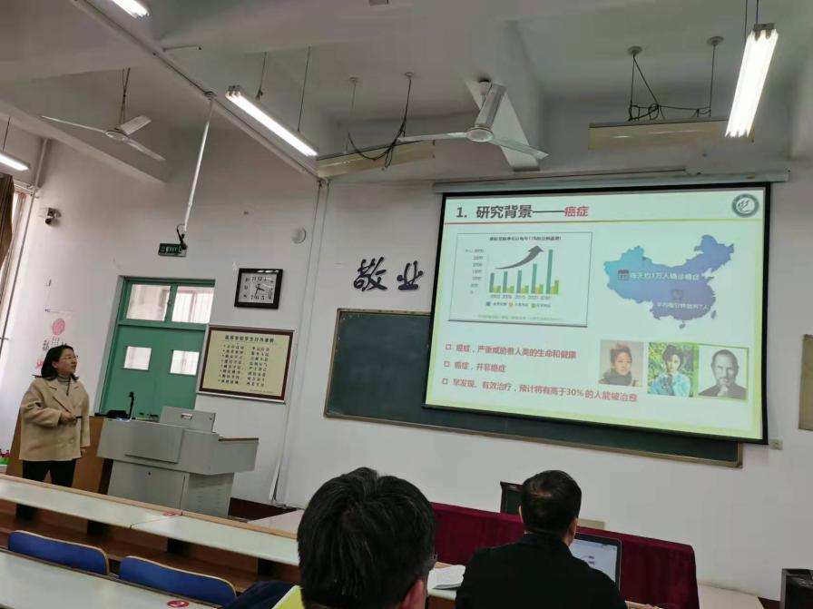 首先,洪敏老师作了题为“纳米探针在癌症诊疗方面应用”的学术报告。她从与癌症研究相关的背景及意义出发,介绍了自己近几年在癌症诊疗方面所做的工作,并重点对基于金纳米探针、氧化石墨烯探针及二氧化锰纳米片探针,在细胞内肿瘤标志物的原位检测和荧光成像,以及协同基因疗法和化疗药物有效抗癌方面的研究工作,进行了非常精彩的报告。