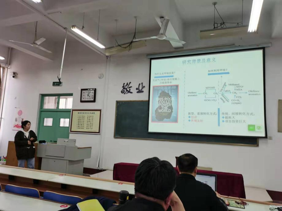 接下来,温景红老师做了题为“过渡金属催化甲烷直接转化的尺寸效应研究”的报告。采用基于第一性原理的密度泛函(DFT)计算方法和周期性边界条件的簇催化剂模型,重点探讨了金属簇的尺寸对甲烷活性和直接转化的影响。从分子水平上探讨了反应过程的微观机理,为实验研究提供了一定的理论基础。