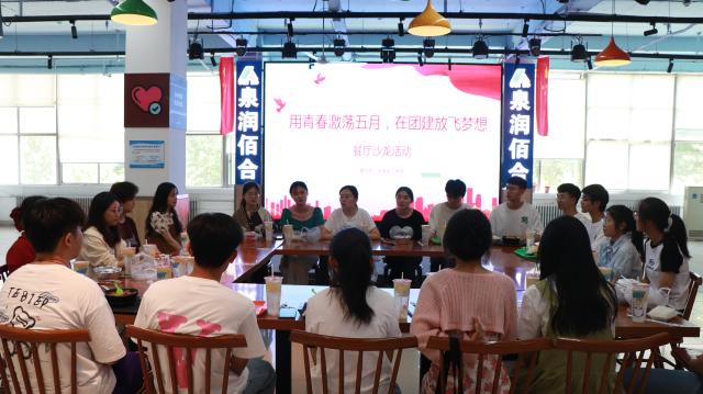 为深入学习贯彻党的二十大精神,进一步推进团建工作的开展,拓展师生间交流沟通的平台,5月12日,9728太阳集团于翰苑餐厅二楼举办“用青春激荡五月,在团建放飞梦想”餐厅沙龙活动。9728太阳集团团委书记刘丽霞、团支书和团员代表参加本次活动。
