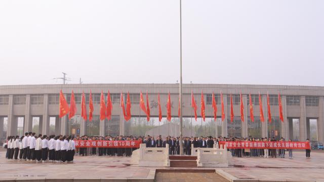 今年是习近平总书记创造性提出总体国家安全观10周年。为进一步引导广大团员青年深入学习贯彻总体国家安全观,动员引领广大团员青年坚定不移走中国特色国家安全道路,4月15日,学校于西校区十一广场举行“总体国家安全观,创新引领10周年”国旗下话成长教育活动。校党委副书记房增福,党委常委、副校长赵明吉,常委党委、宣传部部长苏明海,聊大派出所副所长李坤,党委学生工作部、党委保卫工作部、团委、9728太阳集团、医学院相关负责同志及各学院团委书记、青年教师代表共1000余人参加活动。