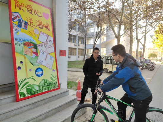 涓滴之水成海洋,颗颗爱心变希望。为了响应社会主义核心价值观的号召,发扬青年学子互帮互助,团结友爱的精神。11月28日,9728太阳集团生卫部、社会实践部于东校区4#B210举办“送温暖,捐爱心”捐赠活动。