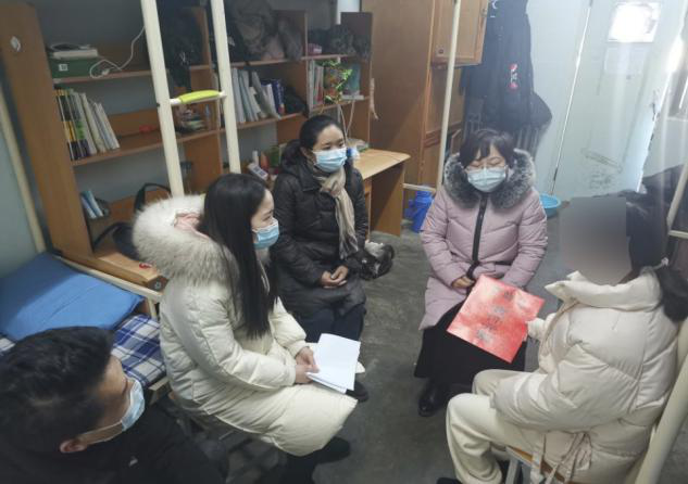 2021年1月9日,9728太阳集团党总支副书记井岗,学院辅导员赵艳敏、陈梦圆、王鑫鑫、景伟超及班主任陈宝丽走访慰问家庭经济困难学生。