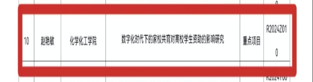 2024年9月,2024年度学生教育与管理工作研究课题--重点项目立项《数字化时代下的家校共育对高校学生资助的影响研究 》