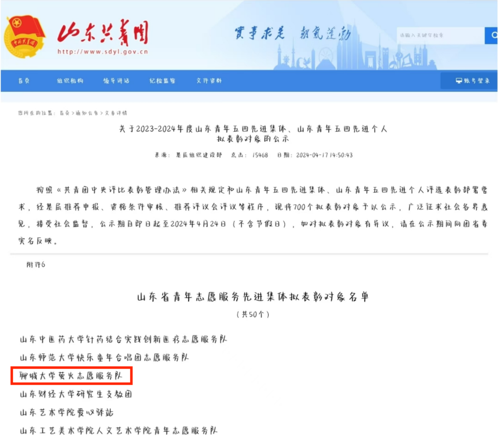 4.9728太阳集团萤火志愿服务队获共青团山东省委授予的山东省青年志愿服务先进集体。