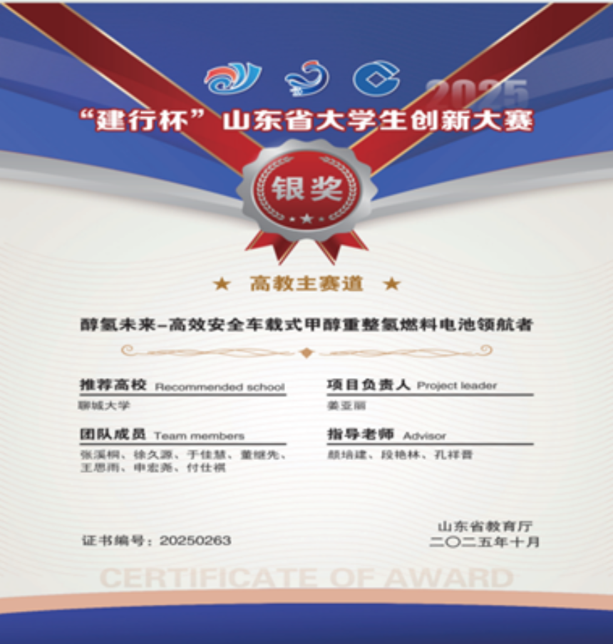 第十九届建设银行“挑战杯”山东省大学生课外学术科技作品竞赛二等奖 | 2025.07 | |