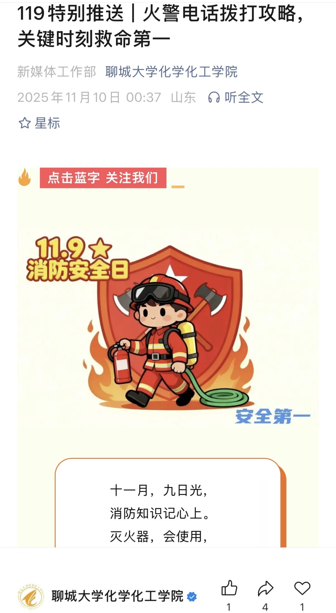 此次活动在线下通过黑板报展示消防知识与技能,在线上通过公众号发布“119安全小贴士”等系列推文,在易班平台则设置互动话题与知识问答。多平台协作宣传,明确了平台宣传要点,确保了宣传内容实用、精准,助力了安全意识入脑入心。