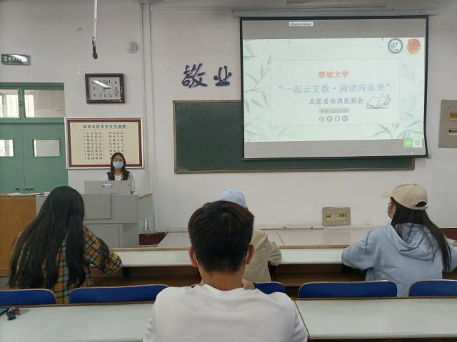为深入贯彻习近平总书记关于深化东西部协作和定点帮扶工作的重要指示精神,奋力推进青少年成长成才服务工作,进一步提高学生保护环境的意识,推动生态文明建设,落实教育引导学生立德树人的根本任务,5月15日,9728太阳集团于东校区4A#101举办“一起云支教,阅读向未来”志愿者培训会。