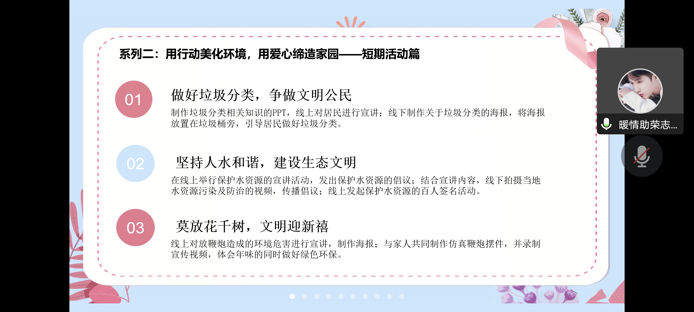 参与本次答辩活动的共有21支社会实践服务队,各服务队主题突出,特色鲜明,聚焦乡村振兴、疫情防控、法制宣传、儿童心理教育辅导工作等热点问题。答辩人通过PPT的形式分别从团队介绍、项目背景、项目主题与内容、实践过程以及预期目标等方面介绍,充分展示了团队风采。其中,暖情助荣志愿服务队在党的二十大精神推进美丽中国建设的号召下,通过“线上线下宣传、日常打卡、知识宣讲”等活动引起人们对环境保护和可持续发展的重视,呼吁大家走绿色环保之路,共建美好家园。益暖志愿服务队响应党的二十大精神加强法治建设的号召,紧扣“深化普法教育,共建法治社区”主题,通过调查问卷、宣讲、走访等形式让居民们更深入全面的了解法律相关知识,学会运用法律维护自己的权益,提升公民法律素养。萤火志愿服务队在做好大学生志愿服务西部、服务基层工作的重要指示下,延续爱心支教活动,通过开展各式各样的课程拓宽孩子们的视野,引导孩子们树立正确的思想观念,带给他们温暖和关怀、梦想和力量。