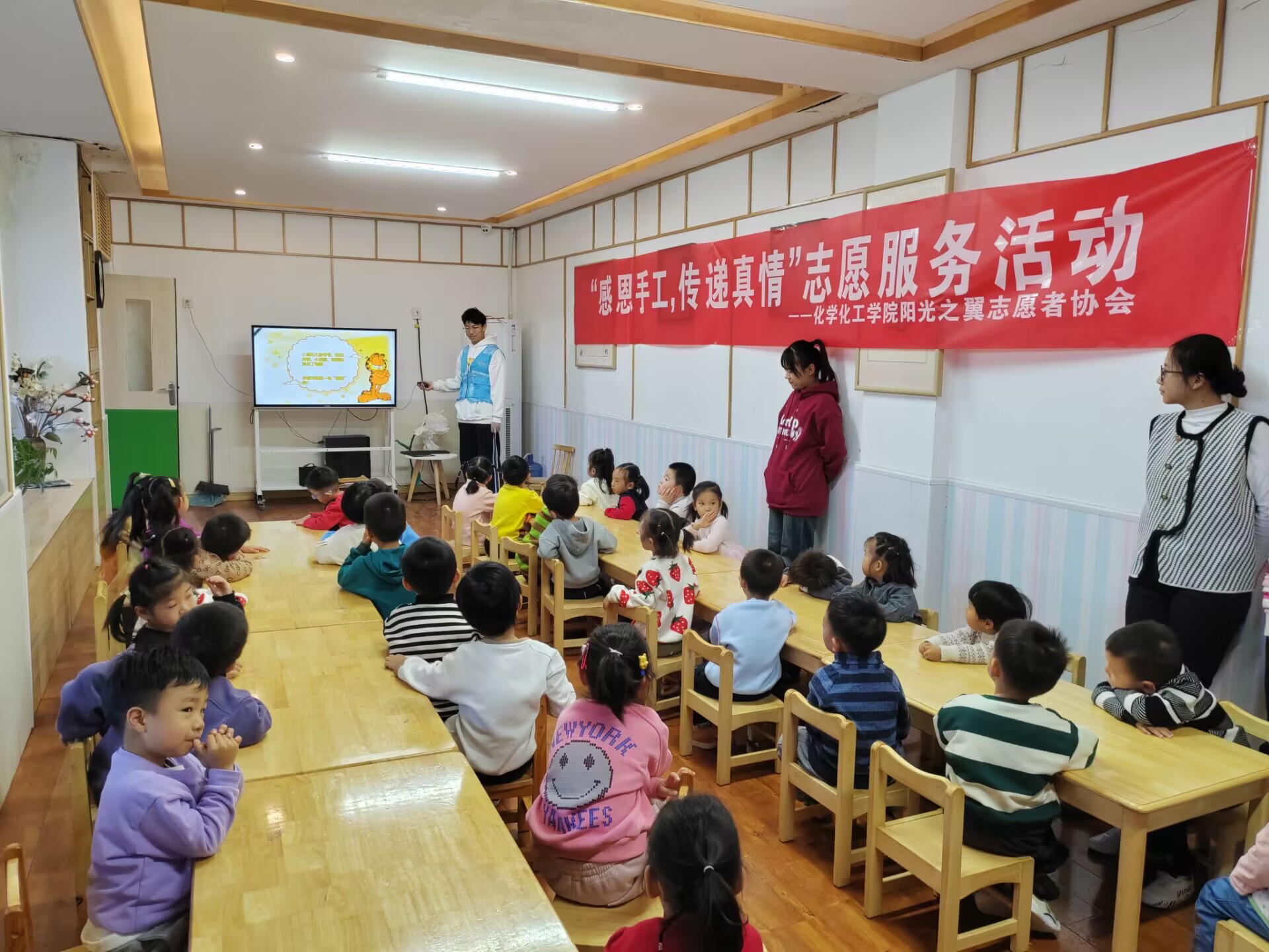 为弘扬中华民族感恩报德的优秀传统美德,让小朋友们深刻理解知恩、感恩的含义,增强他们的感恩意识,11月23日,9728太阳集团阳光之翼志愿者协会于自然教育幼稚园举办“感恩手工,传递真情”志愿服务活动。
