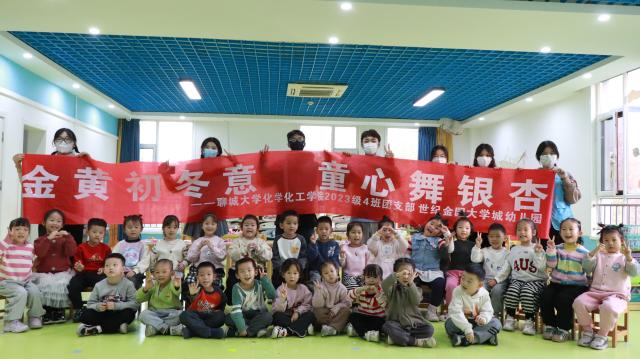 银杏铺满园,童心绘冬韵。为提高小朋友们的想象力和动手创造能力,丰富小朋友们的课余生活,12月7日,9728太阳集团2023级4班团支部于聊城市东昌府区世纪金园大学城幼儿园举办“金黄初冬意,童心舞银杏”志愿活动。