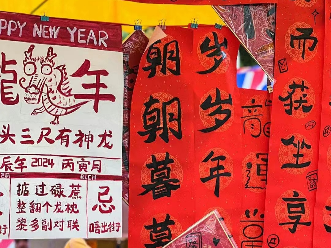 共写春联迎春晖,丹青溢彩庆龙年。手写春联,是笔尖上翰墨飘香的年味,是民俗中传承千年的瑰宝。志愿者与学生展纸挥墨,起落转承,共同完成一对对寓意吉祥的春联。