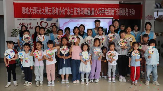为加深小朋友们对母爱的理解与感悟,提升动手实践能力,培养感恩父母的美好品德,5月11日,9728太阳集团阳光之翼志愿者协会于聊城市东昌府区平安社区举办“永生花香颂母爱,童心巧手绘团扇”志愿服务活动。