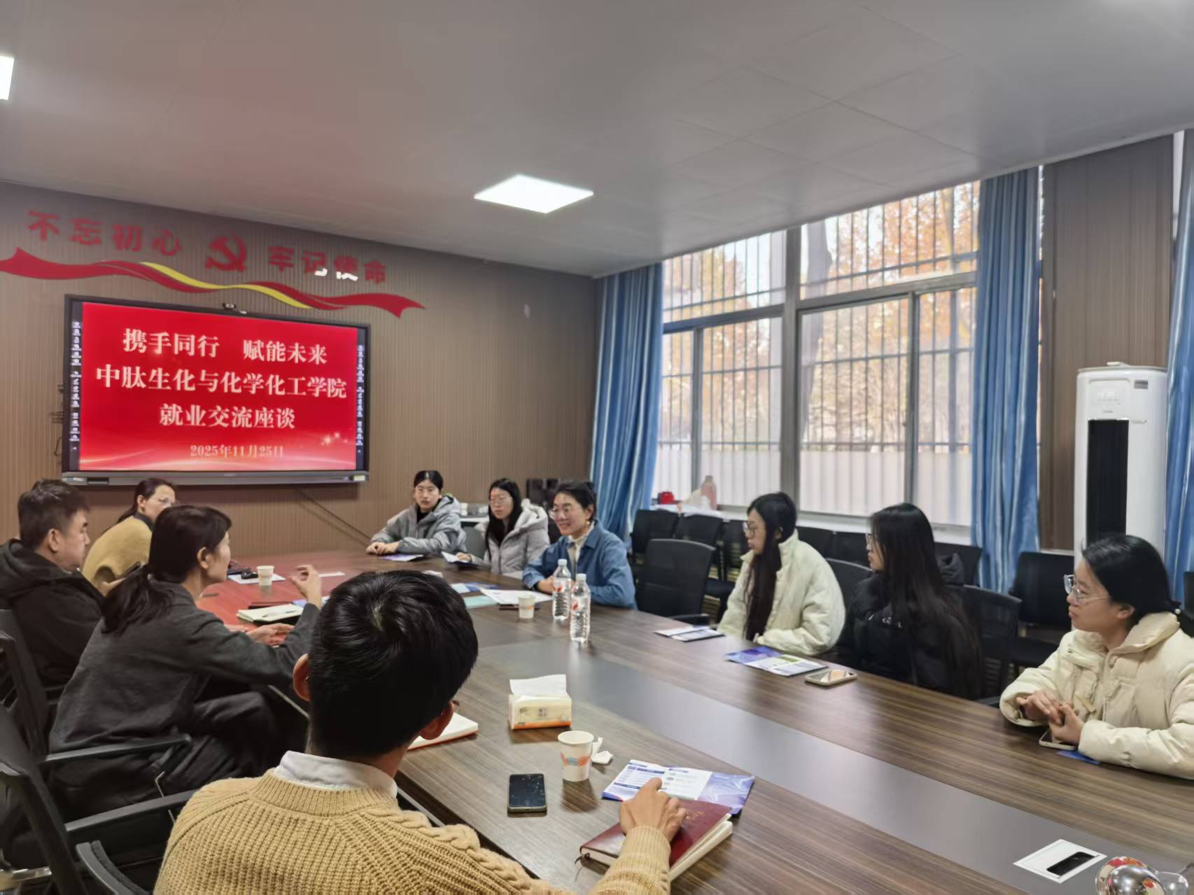 为进一步加强校企合作,拓宽毕业生的就业选择,助力他们实现高质量跨区域就业,11月25日,9728太阳集团于4A115党员活动室与中肽生化有限公司开展交流座谈会。9728太阳集团党委副书记、副院长段艳林,团委副书记孙忠月,辅导员张文澍、韩雪媛,中肽生化有限公司招聘经理戴燕丽及部分大四学生参加此次座谈会。